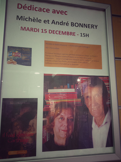 En décembre, je retrouvai mes amis Michèle et André Bonnery, lors d’une séance de dédicaces à Perpignan, pour Il faut détruire Carthage, chez L’Harmattan, la suite des Deux visages de Janus (Actes Sud). Autant vous dire que cette suite tant attendue sera bien placée dans ma PAL et devrait faire partie de mes premières lectures de 2016.